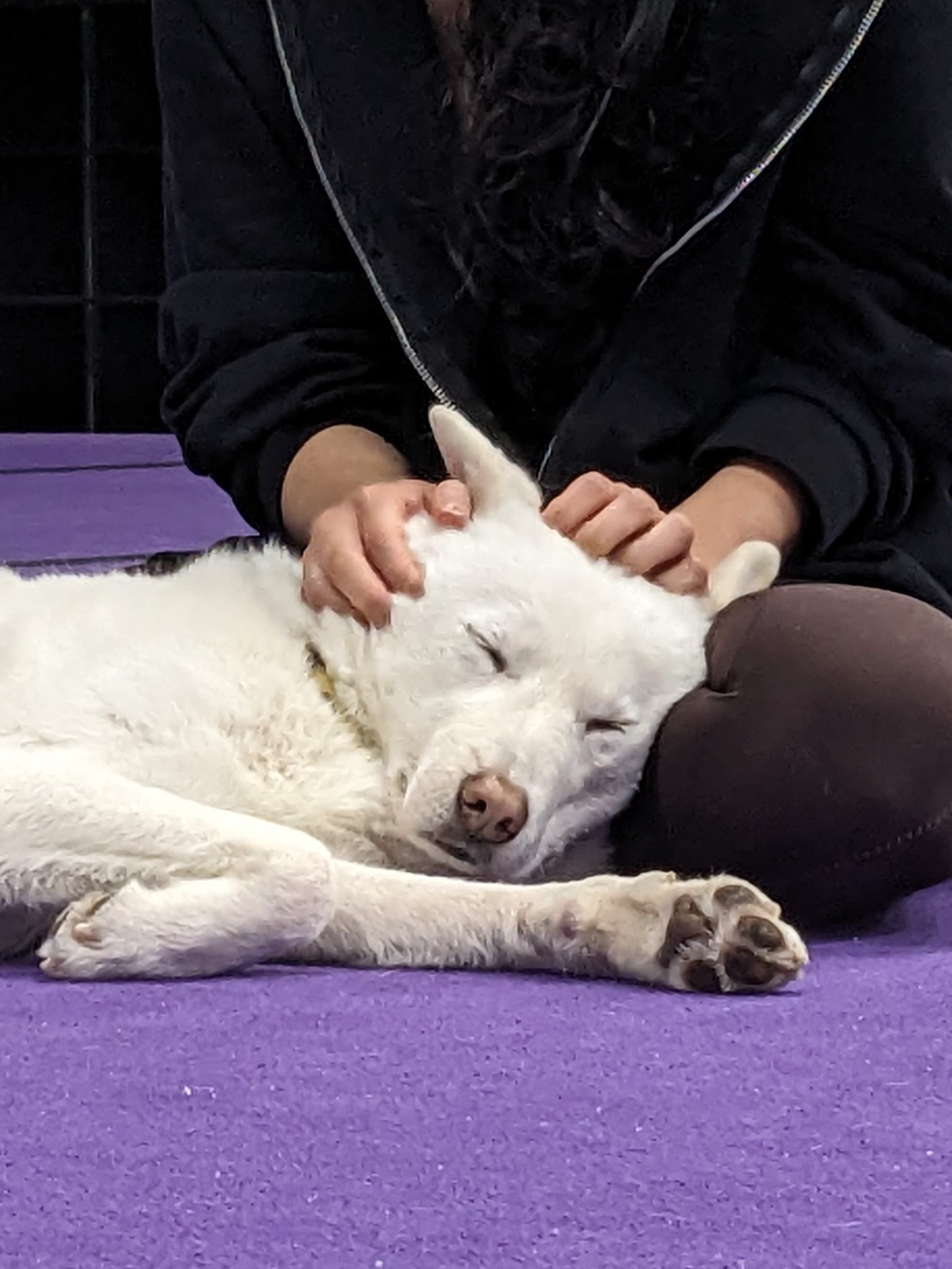 Mochi: our *stolen* resident studio dog, and official greeter-puppy part 3. She does not take her job seriously, and you will only sometimes know she’s there. If you don’t see her, look for the pile of blankets, and you might see an ear poking out. Her secret language is cuddles + naps, and telling off the bigger doggos.